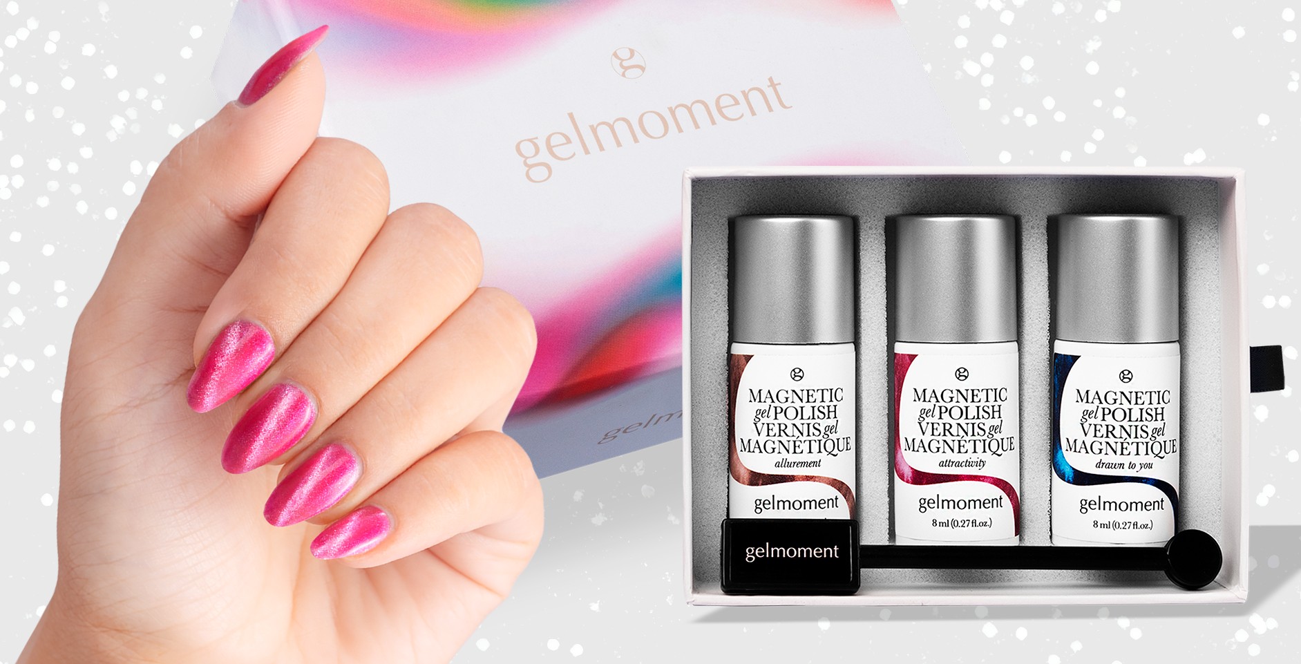 Gelmoment magnetic gel polish adds shimmering depths and dazzling dimensions to your manicure with intensely eye-catching results.