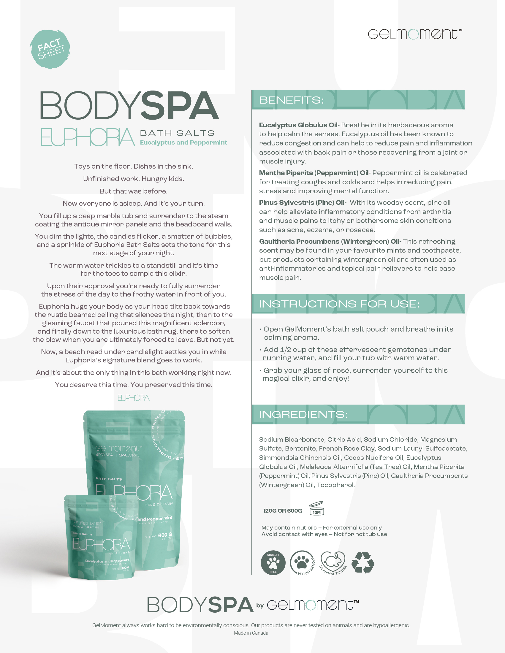 Euphoria Bath Salts - Eucalyptus & Peppermint - Large (600g)