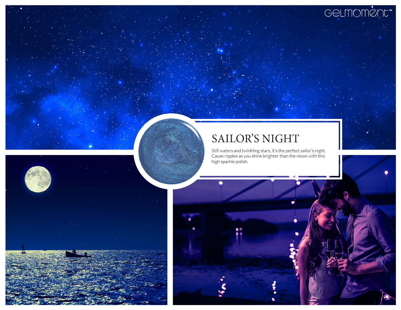 Revel in the star-studded shimmer of this sapphire blue polish.